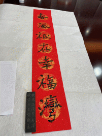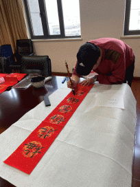 每逢春节,无论城市还是农村,家家户户都要挑漂亮的红春联贴于门上,辞旧迎新,增加喜庆的节日气氛。“胜日寻芳泗水滨,无边光景一时新”、“等闲识得东风面,万紫千红总是春”、“绿竹别其三分景,红梅正报万家春”等,通过这样一幅幅对仗工整、简洁精巧的对联既表达了大家对于2022年的期待,更是表达了大家对于美好景象、美好生活的喜爱,借此新春佳节抒发大家心中的美好愿望。以文寄情,以文写意,通过写春联这样传统的文化形式,让大家相聚一堂,精心挑选的诗句,流畅自然的书法,大家提前感受到扑面而来的春节气息。
